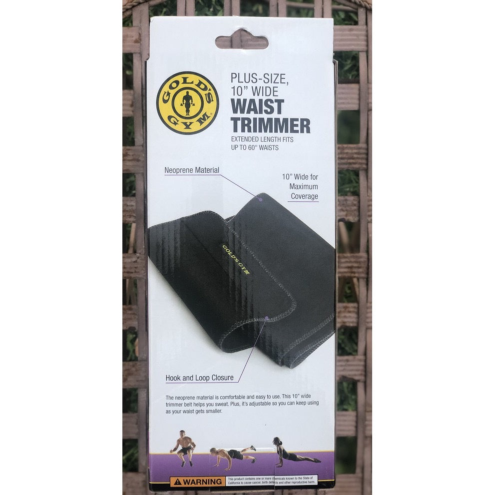 Made in USA or Imported;Gold's gym waist trimmer belt;PLUS-SIZE 10"WIDE WAIST TRIMMER.Neoprene Material;Hook and Loop Closure;10" Wider for Maxiumum Coverage;WEIGHT LOSS BELT;The neoprene material is comfortable and easy to use.This 10" wide trimmer belt helps you sweat. Plus,it's adjustable so you can keep using as your waist gets smaller.MANUFACTURED AND DISTRIBUTED UNDER LICENSE FROM GOLD'S GYM MECHANDISING LLC . GOLD'S GYM AND THE GOLD'S GYM LOGO ARE REGISTERED TRADEMARKS OF GOLD'S GYM LICENSING LLC.